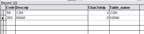 Table_name | Name of exception table that is referenced in order to obtain the valid range of numbers. This field can be up to twenty characters long (e.g., CSA). |