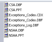 • The exceptions tables are always visual FoxPro tables (.dbf) even if the back-end is SQL.