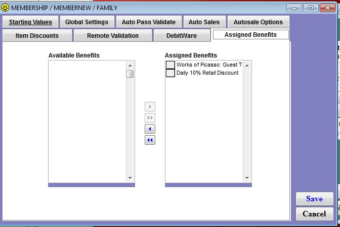 • Available Items / Assigned Items selection boxes - create a manageable way to assign available items. Any of these linked DCIs purchased by the member are considered a redemption of the benefit.