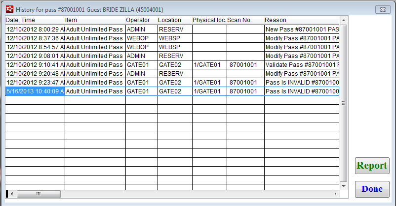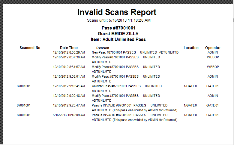 A report may be printed from the Detailed Scan dialog for the pass or access record.