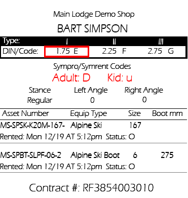 Depending on the rental shop, a label/tag that contains guest and equipment information as well as setting information such as DIN, toe/heel track, stance, etc., can be very useful. This type of label is often used when a rental technician attaches equipment to a Rental form at the TechStation, and then moves to a tech bench to complete the fit-up. Because the rental technician is not standing at the tech station, it is helpful to print the relevant guest and equipment information on some sort of label or tag for use by the technician at the bench. A Graphic layout that includes all of the required information can be configured in SysManager and printed at the TechStation (via RentPrint application).