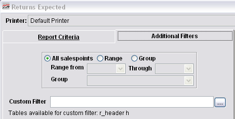 • Salespoint range (based on the tech station “instance” name – must be typed into dropdown fields at this point in time)