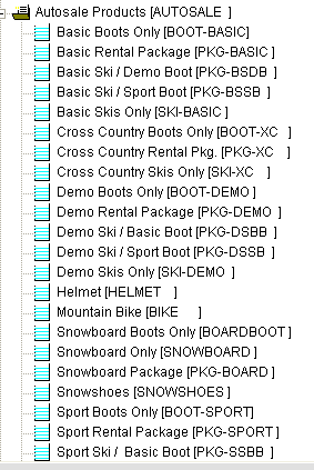 1. Create a full set of Basic Skis Only, Basic Boots Only, Basic Ski Package, Demo Skis Only, Demo Boots Only, Demo Package Only, etc.