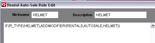 • This says is if there is a piece of rental inventory attached that is a HELMET type, add the Helmet modifier.