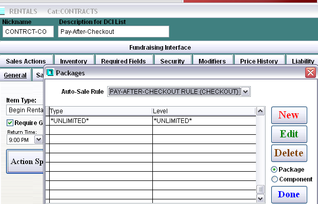Important: This is the rule you attach to your Rental Contract item (the one processed at Self Entry) within the Begin Rental > Action Specifics.