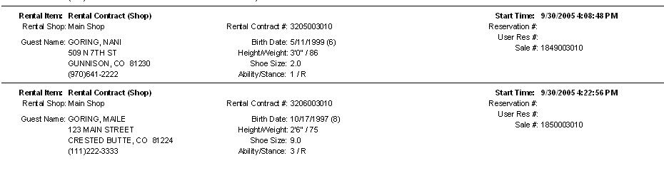 Another useful tool when preparing for next-day arrivals is the Rentals Arrival Report. This report can be used to get a general idea of how much traffic to expect for the date and shop specified along with providing specific guest information necessary to pre-set equipment; this can significantly decrease the amount of time required to process groups.