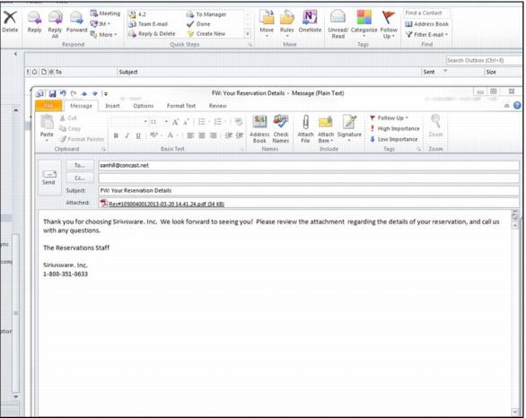 To e-mail a confirmation, the primary guest in the reservation must have an e-mail address in guest record. For MAPI setup, the e-mail program is running in background.