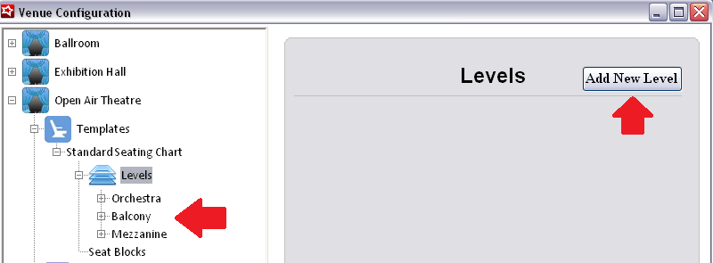 To add a new Level, expand the template and click Add New Level. Enter the Level Description and hit Save. Repeat this process for every defined Level in the Venue template.