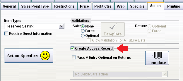 In order to create barcodes that correspond to the date/time of the show(s), Create Access Record is checked.
