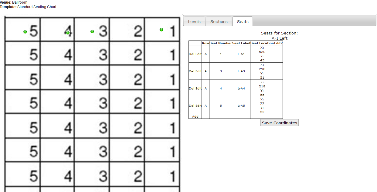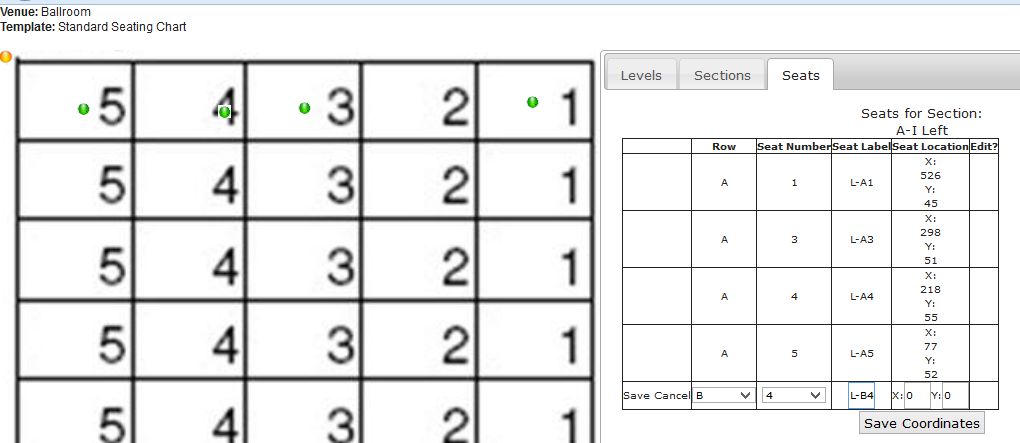 2. When done repositioning, click on the Save Coordinates button to store the current seat locations.