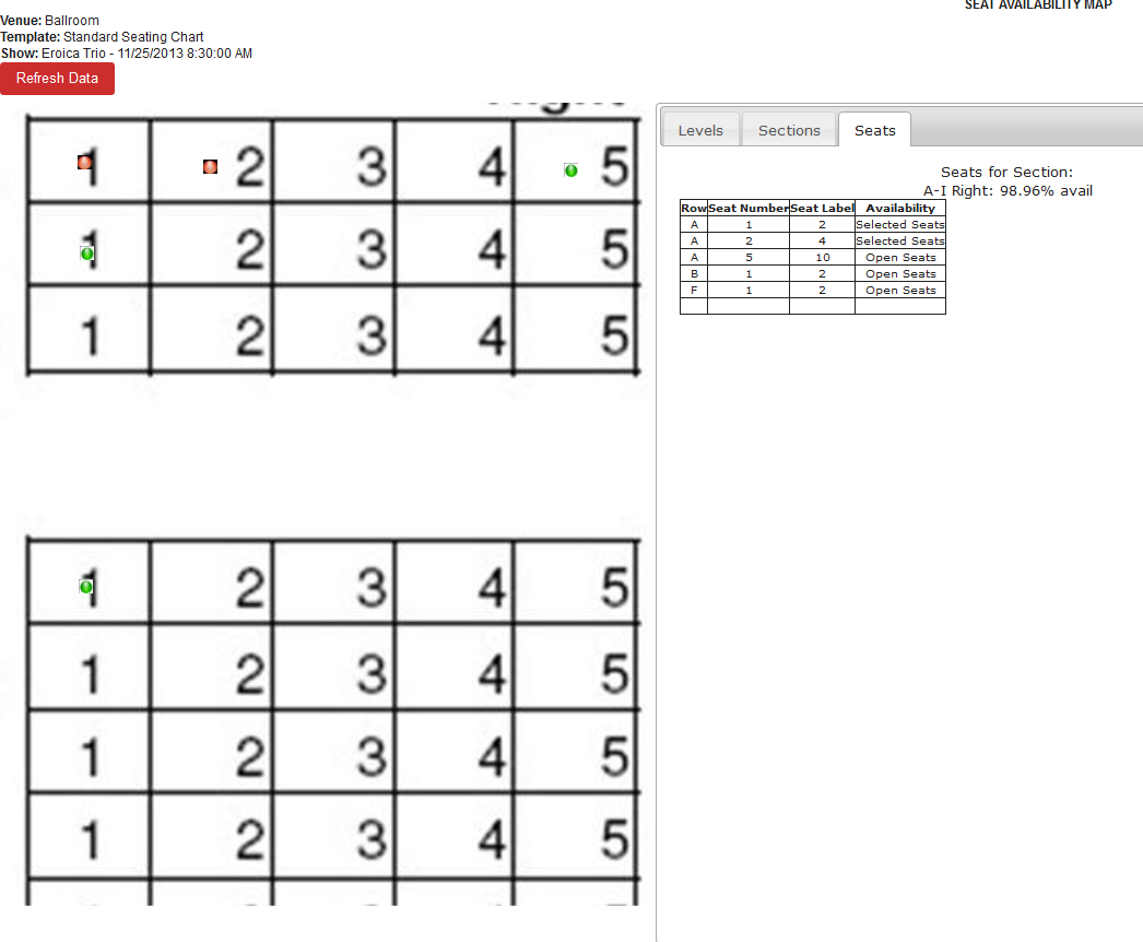Note: The Refresh Data button above the seat map image allows the admin to refresh the data on the map as needed.