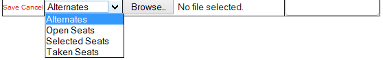 Availability indicators are images uploaded by the user that are associated with each Availability Type established for that production. By default, the system is set up with four availability types for all productions: Open Seats, Taken Seats, Selected Seats and Alternates. More availability types can be added to the database in the rsSeatAvailabilityIndicatorTypes table. Default images of colored circles have also been provided for each of these availability types. These are the images that represent a seat and its status in the client user interface in Reserved Seating module.