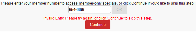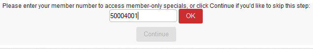 1. Enter the Pass or Member Number in the text box and click OK to validate. If the user would like to continue without entering a pass number, simply leave the text box empty and click Continue.