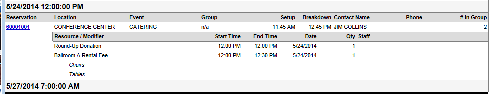 This report lists each reservation within a given date range that is utilizing the selected resource(s). Only reservations entered into our Resource Scheduling module are included.