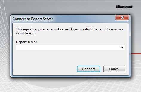 Important: When opening a .RDL file in Report Builder 2.0, you receive a prompt asking you to connect to a report server (screen shot below). This is not necessary. Click Cancel to continue. Please note that the default is Connect, you must click Cancel.