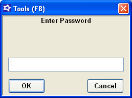 While it is not necessary to access the Tools dialog after Sales has been properly set up, it may be. One way of doing this is to change the Interface setting back to Classic, and then the function buttons become available. Another method is to press the F8 key. If the operator who is logged in has the proper security level, a dialog appears prompting the user for the password (see the following screen capture). However, Sales must be at the Product Selection screen. Pressing F8 or F6 to quit at the Ready or Finalize screens does nothing.