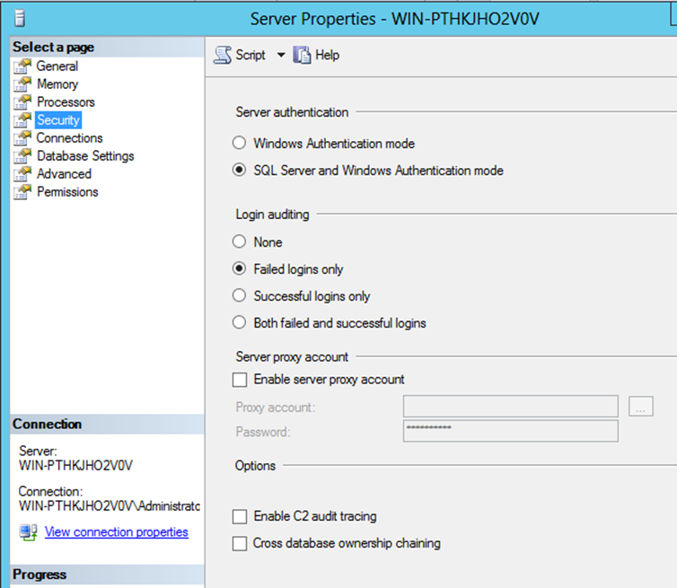 Verifying mixed mode authentication is enabled