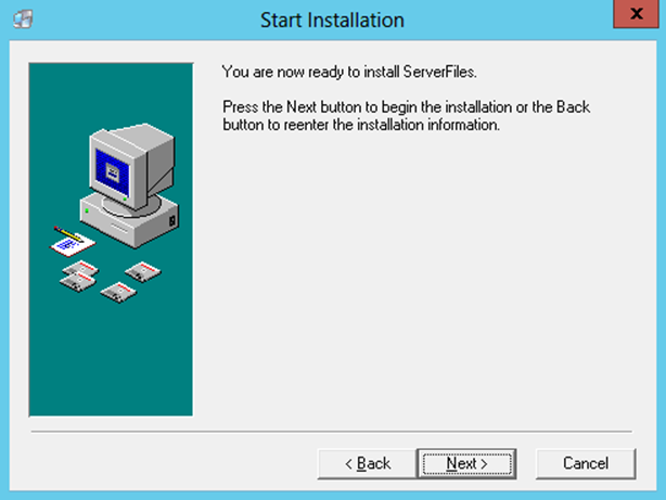 9. You are presented with the following dialog. Click Next to start the installation. The installer creates the Siriusware directory structure and copies the installation files from the SiriusTEMP directory into the \Siriusware\Install directory. It also copies the license file into the \Siriusware\License directory (if you previously selected this option).