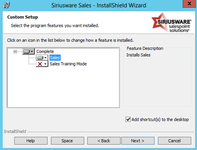 • Installs a desktop shortcut to Sales; a training shortcut to Sales can be installed as well.