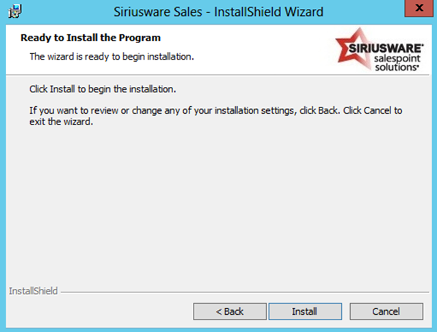 • Creates the \ProgramData\Siriusware\Sales and \Program Files\Siriusware\Sales directories and associated files.