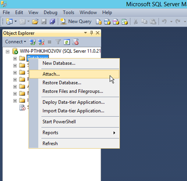 To attach the SiriusSQL database to SQL Server 2008/2012: