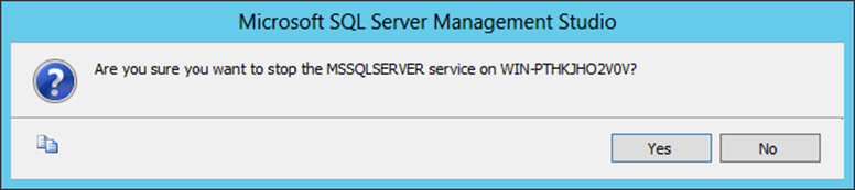2. You are prompted to confirm the stop of SQL services on the server. Click Yes to continue.