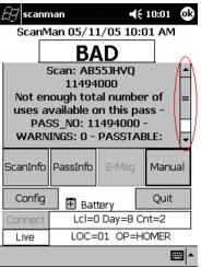 This area of the screen is used to show the results of scans. The scroll bar on the right is enabled if the information to show is more than can fit on the screen.