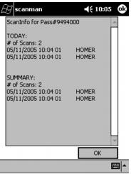 Tap the Scan Info button after a successful scan and the pass/access number, the number of scans today, the date, time and location of the scans, the number of days the pass/ticket has been scanned, and a list of the days on which the pass/ticket was scanned are displayed.