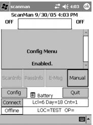 Note: Make sure that the value that ConfigCode is set to is in all capital letters. This is because ScanMan module capitalizes all letters that are scanned or typed in. If the ConfigCode is set to a lower case or mixed case value, then no barcode scanned ever unlocks the Config menu.