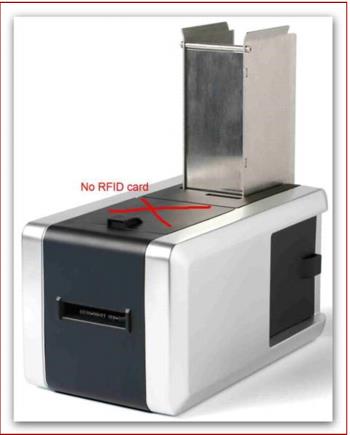 3. Do NOT store cards on top of the Axess Smart Printer as this can cause issues with a WTP number from a card sitting on top of the printer to be read as opposed to the card currently being encoded and printed.