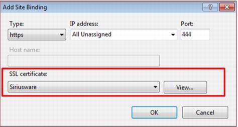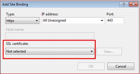 8. Select an SSL certificate installed on the server, click OK and click Close on the Site Bindings dialog.