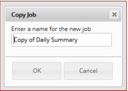 Use this feature to make an exact copy of an existing job. The user is prompted to enter a name for the new job (defaulting to Copy of the existing job name). Though it is not required that job names be unique, it is highly recommended to avoid confusion.