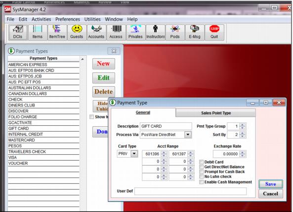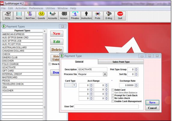 When a Gift Card is sold at a Point-of-Sale (POS) the seller selects three forms of payment to process the Gift Card. The payment type GIFT CARD places money on the Gift Card via DirectNet. The payment type GCACTIVATE was created for accounting purposes so reports balance. The seller selects the last payment type and is the method in which the guest is paying for the Gift Card (i.e., Cash, Credit, Check, etc.).