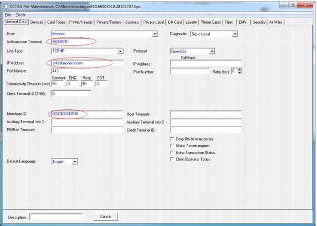 b. Modify the IP Address to point to the Moneris processing server. (Typically, it is ipgate.moneris.com.)