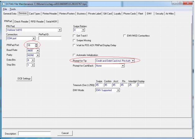 a. Modify the Pinpad Port number to match the port number retrieved in Step number 2 listed above.