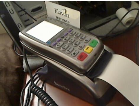 8. Below is a screen capture of what the pinpad looks like. It has a base with a built in receipt printer.