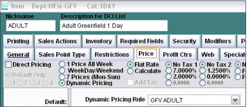 3. Dynamic Pricing Rules were configured that priced each piece of the package based on the combination of modifiers present in the Fun-Pack. The conditions used were ISMOD(), HASMOD() and SHAREMOD(). These functions can specify a department, category and item within the parenthesis separated by commas. Each rule was attached to the corresponding item.