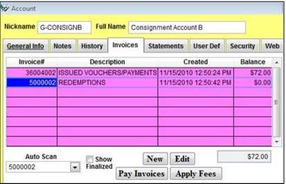 3. Set up the normal consignment account that includes an auto-scan invoice.