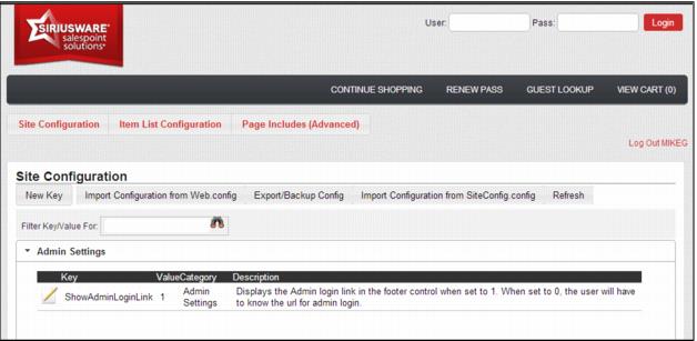Note: The Admin log-in link can be activated/deactivated by changing the value of the ShowAdminLoginLink key in SiteConfig.config.