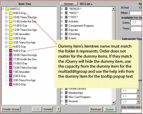 1. Each Category must have a “dummy item” to store the capacity information and tooltip information in the help info field.