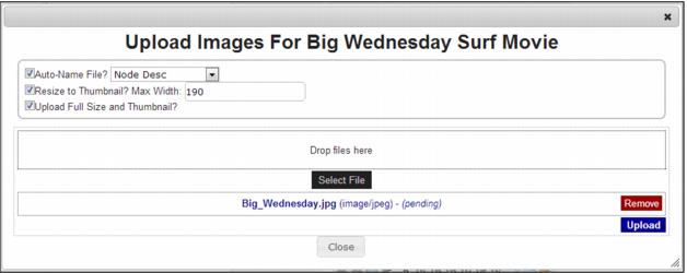 Once the images have been selected and the options set, click the Upload button to complete the upload.