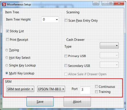 3. You can print other documents on the printer connected to the SRM by pointing to the “SRM test printing” (e.g., cc receipt).