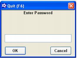 To quit the Sales program, you must be at the Product Selection screen. Pressing the F6 key brings up a dialog asking for the password in the Sales32c.INI file (see the following screen capture) the same as with F8 for the Tools dialog. Entering the proper password causes Sales to quit. Entering the wrong password removes the Password dialog and returns to the Product Selection screen.