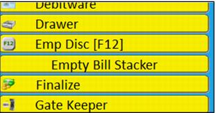 8. When the bill hopper has reached the specified bill count threshold, a notification is sent to staff (assuming notifications have been configured). After the staff member empties the bill collector, he/she needs to press F8 to access the Tools menu> Action > press the Empty Bill Stacker button to reset the threshold.