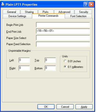 If the characters do appear in the text file, verify that they are correct by checking the programmer’s/developer’s/user’s manual. If they are correct, it’s possible to test them out within the printer driver. For example, to test the cut code for a Star TSP600 in the printer driver, open the printer driver properties and switch to the Printer Commands. Two fields here can be used for testing control codes: Begin Print Job and End Print Job. When testing font formatting changes, it is recommended to use the Begin Print Job field; for cut codes, use the End Print Job field.