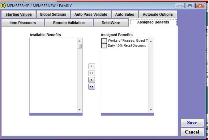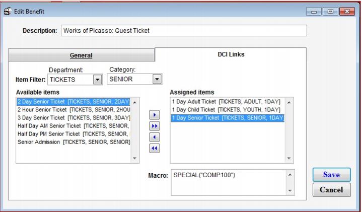 • Available Items / Assigned Items selection boxes - create a manageable way to assign available items. Any of these linked DCIs purchased by the member are considered a redemption of the benefit.