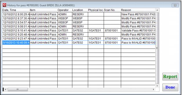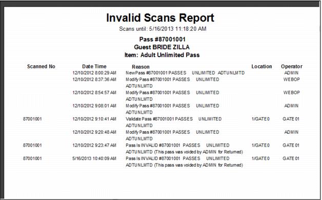 A report may be printed from the Detailed Scan dialog for the pass or access record.