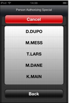 Choosing the Special button in the line item, results in a list to select a special. A barcode can also be scanned to apply the special.
