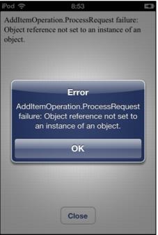 If an attempt is made to scan a specials barcode outside of the Specials list dialog the following error results: