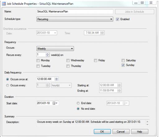 2. Click the Change Button and the Job Schedule Properties dialog box opens